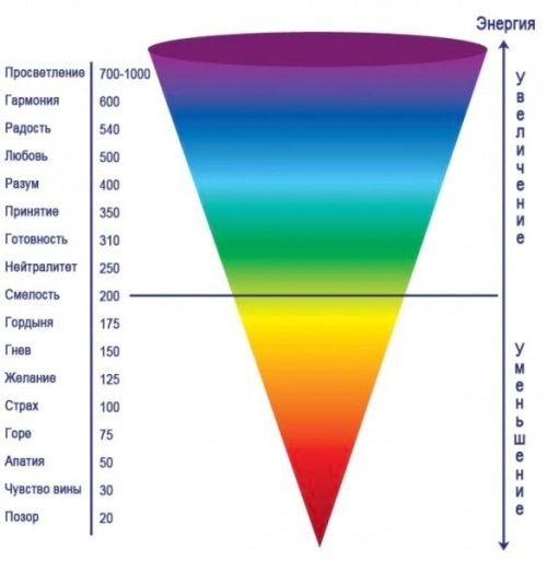 Кто хочет выяснить как считываются уровни сознания по Хокинсу можете поискать в сети. Здесь на сайте было много статей Хокинса с его диагрммами по уровням сознания.