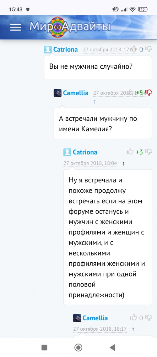 Ты ответь по сути этого твоего поста: Камелия отметилась на сайте весьма интересными соображениями, вступала в диалог, отвечала как могла на вопросы. Человека интересно было читать, даже если имелись расхождения во взглядах. Камелии было что сказать и она это неплохо осуществила. Но тебя заинтересовал только гендерный вопрос, который можно было разрешить в личке. Но ты вынес это на всеобщее обсуждение.