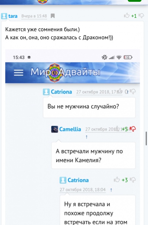 Второе. Эта путаница с гендерами указывает на неадекватность в психике и снова исходя из уважения к ней(нему) это нужно вынести на свет. Потому как все эти красивые слова об адвайте в её(его) исполнении, не стоят ничего. Поскольку нет принятия себя как есть. И вот эта фальшивость и заставляет поднять всю эту бучу в стакане воды. Надеюсь ты правильно поймёшь